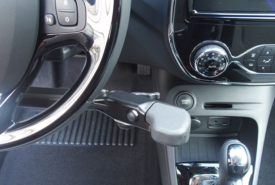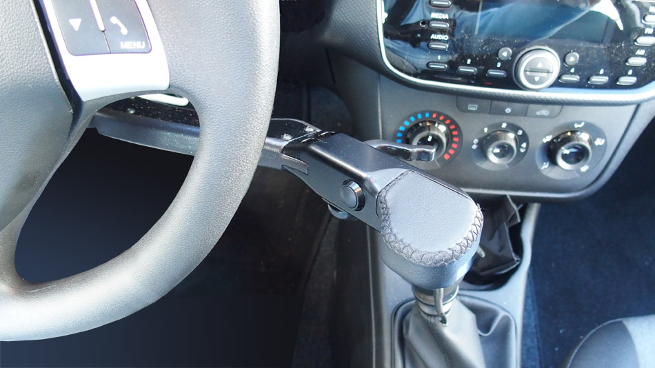 Una palanca está unida a la palanca de freno para el control electrónico del acelerador. Al tirar de la palanca hacia la palanca, se actúa gradualmente sobre un potenciómetro alojado en el interior de la empuñadura y, en consecuencia, se obtiene el control del acelerador. Al presionar la palanca a fondo, se acciona un botón para activar el kick down (transmisión automática). En la palanca hay otros dos botones para operar la bocina y el sistema de arpón de freno, útiles para arranques en pendiente y para mover el selector de marchas. Para frenar, debe empujar la palanca hacia adelante. La biela al pedal del freno está equipada con un sistema de seguridad para cancelar la aceleración en caso de frenada brusca.