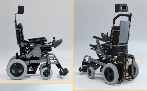 Estructura de acero con recubrimiento en polvo. Asiento anatómico acolchado con resinas de uretano, desenfundable y recubierto de Lycra. Respaldo tapizado en Lycra, basculante y equipado con reposacabezas y cinturones ajustables para obtener una variación de profundidad y un control eficaz del tronco. Reposabrazos acolchados regulables en altura y abatibles hasta el nivel del asiento. Reposapiés ajustables, giratorios y desmontables con banda de contención. Control electrónico con joystick de dirección en panel. Pantalla brillante con indicaciones de: estado de carga de la batería, cualquier fallo, botones ARRIBA y ABAJO. Dos motores de 160W con freno de estacionamiento electromagnético y desbloqueo manual trasero. Dos baterías cíclicas de 32 A que no requieren mantenimiento. Cargador automático de baterías separado de la ayuda. Dos ruedas delanteras Ø 200×50, dos ruedas traseras neumáticos Ø 300×60, asiento de 40 y 45cm.